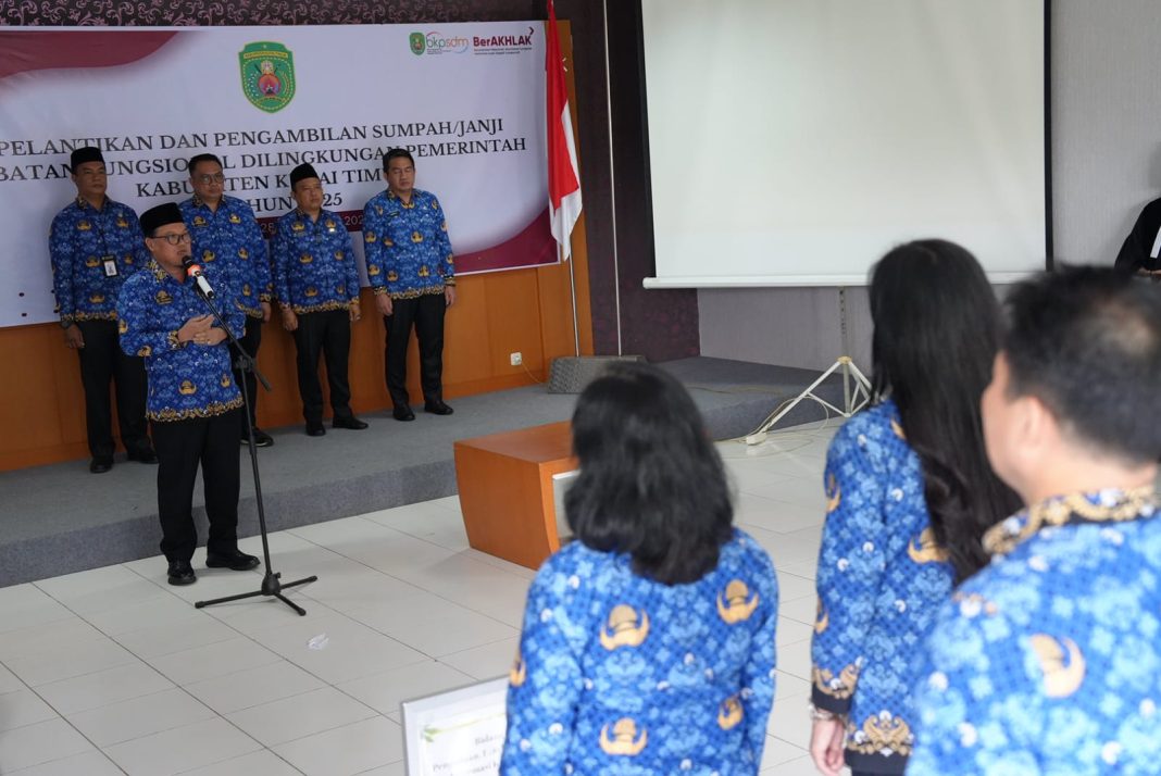 Pelantikan dipimpin oleh Kepala BKPSDM Kutim, Misliansyah, mewakili Bupati Kutim Ardiansyah Sulaiman melalui mekanisme pendelegasian wewenang.