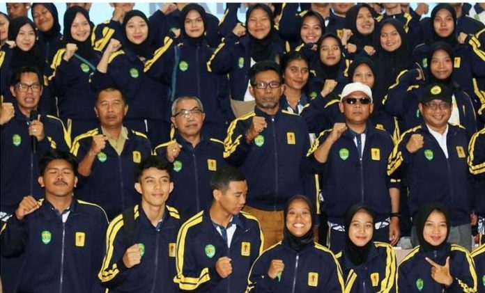 AKSELERASI – Sejumlah atlet, pelatih, dan official kontingen Benua Etam yang berlaga di Pekan Olahraga Mahasiswa (Pomnas) XVIII/2023 di Kalimantan Selatan (Kalsel), resmi dilepas. Mewakili Penjabat (Pj) Gubernur Kaltim Akmal Malik, Kepala Dinas Pemuda dan Olahraga (Dispora) Kalimantan Timur (Kaltim) Agus Hari Kesuma menyampaikan sejumlah pesan kepada para atlet.