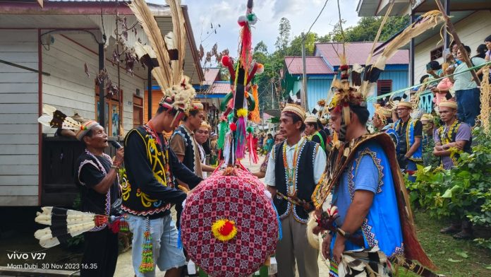 AKSELERASI – Suku Dayak Buket, Kampung Noha Tivab, Kecamatan Long Apari, Kabupaten Mahakam Ulu (Mahulu) sukses melakukan penyambutan kebudayaan Icu Onam dari Kampung Noha Silat.